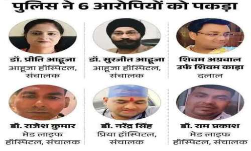 इस कार्रवाई में 'आहूजा' हॉस्पिटल, 'प्रिया' हॉस्पिटल, 'मेड लाइफ' हॉस्पिटल और 'आरोही' हॉस्पिटल के संचालक डॉक्टरों समेत 6 आरोपियों को जेल भेजा गया है।